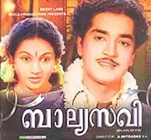 Balyasakhi is a 1954 Indian Malayalam-language film, directed by Antony Mitradas and produced by P. Subramaniam.[1] The film stars Prem Nazir and Miss Kumari.[2] The film had musical score by Br. Lakshmanan and lyrics were written by Thirunainarkurichy Madhavan Nair.[3]