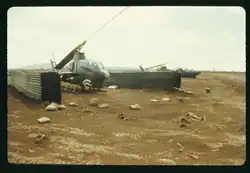 In 1975 Phung Duc Airfield was the base camp of the Army of the Republic of Vietnam (ARVN) 44th and 53rd Regiments. In the early morning of 10 March 1975 at the start of the Battle of Ban Me Thuot, the base was attacked by two People's Army of Vietnam (PAVN) sapper battalions. While the PAVN sappers quickly penetrated the 44th Regiment base area, which was defended by only rear echelon troops, they met stiff resistance in attacking the 53rd Regiment's base and by dawn had been pushed out of the base with the loss of over 100 dead.[6] The PAVN 149th Regiment launched another attack against the 53rd Regiment's positions on 11 March, but were forced back with numerous casualties.[6]: 190 From 12 to 13 March the ARVN 45th Regiment was dropped by helicopter onto Hill 581 1 mile (1.6 km) east of Phung Duc to begin a counterattack to retake Buôn Ma Thuột which had fallen on 12 March.[6]: 169 At dawn on 14 March, the 149th Regiment launched another attack on the base supported by six tanks, the attack was again beaten back with the loss of one tank.[6]: 190 A further attack was scheduled to take place during the afternoon, but some of the supporting infantry failed to arrive on time. The attack took place at sunset and the tanks became disoriented in the fading light and vulnerable to ARVN fire, by midnight the attack was called off.[6]: 191 Simultaneously with the attack on Phung Duc the PAVN 24th Regiment supported by tanks attacked the ARVN 45th Regiment on Hill 581 scattering the 45th Regiment, killing over 200 soldiers and ending the hopes for a counterattack to retake Buôn Ma Thuột.[6]: 191–2 At 03:00 on 16 March the PAVN launched an artillery barrage on the 53rd Regiment base followed by a two pronged assault 90 minutes later by the 66th and 149th Regiments supported by tanks. The PAVN were unable to breach the base's earthen walls and lost two more tanks to rockets and anti-tank defenses. PAVN engineers eventually blasted a path through the defenses and by dawn on 17 March the PAVN had finally penetrated into the base. The 53rd Regiment commander Colonel Vo An and over 100 of his men managed to escape the base and make for ARVN positions at Phuoc An.[6]: 194–5