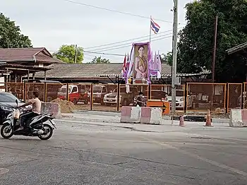 The name "Ban Noen" originated from "Ban Noen-Khai Luang" (บ้านเนิน-ค่ายหลวง), dating to the Thonburi period (1767–82),[1] people in this area have careers making Khong wong (ฆ้องวง), Thai musical instruments that are made from metal by a casting and forgings method. Khong wong from Ban Noen are well known that good quality and reverberate. In addition, not far from here is also the location of another community is "Ban Bu" (บ้านบุ), a community with a bronze work casting career. [2][3] It is located on south bank of Khlong Bangkok Noi (Bangkok Noi canal)[3] and during World War II, it was the only community of Thonburi side adjacent to the Imperial Japanese Army base. It was often bombed by Allied planes at night.[4]