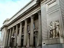 The bank's headquarters are located in Ciudad Vieja, Montevideo.[11] The building, designed by the Italian architect Giovanni Veltroni in a neoclassical style, was built in 1866 to house the Italian Bank, and was later used successively by other banking institutions, such as Banco Unión, or by the Junta de Crédito Público and by Banco Nacional until its dissolution.[12]