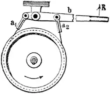 A band brake is a primary or secondary brake, consisting of a band of friction material that tightens concentrically around a cylindrical piece of equipment or train wheel to either prevent it from rotating (a static or "holding" brake), or to slow it (a dynamic brake). This application is common on winch drums and chain saws and is also used for some bicycle brakes.