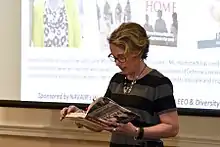 - ↑ Hughes, Mary Ann (July 2011). "Back on the home front". Library Journal. 136 (12): 40. Retrieved 13 October 2015.