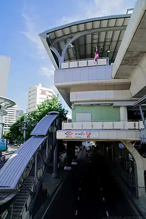 Bang Bua Station (Thai: สถานีบางบัว, pronounced [sā.tʰǎː.nīː bāːŋ būa̯]) is a BTS Skytrain station, on the Sukhumvit Line in Bangkok, Thailand. It is located in front of the Bang Khen Main Campus of Sripatum University and Bang Bua School. The station is part of the northern extension of the Sukhumvit Line and opened on 5 June 2020, as part of phase 3.[1][2]