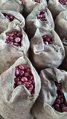 Bangalore rose onion, locally called gulabi eerulli, is a variety of onion grown in and around Bangalore in Karnataka. It got the Geographical Indication tag in 2015.[1]