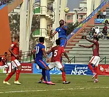 Bangladesh participated in the 2016 South Asian Games in hopes to defend their title. They qualified for the semi-finals, following a 2–1 victory over Nepal in the final group-stage game.[31] However, the team bowed out of the tournament after suffering a 0–3 defeat at the hands of India. During the match Bangladesh coach Gonzalo Sanchez Moreno was sent off for shouting at a referee for denying his team a penalty.[32] Bangladesh finished the tournament by winning the Bronze medal match against Maldives on penalties.[33]