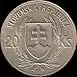 20 Ks | 31 mm | 15 g | Milled | Coat of arms, "SLOVENSKÁ REPUBLIKA", value | Jozef Tiso, "DR. JOZEF TISO - PRVÝ PREZIDENT SLOVENSKEJ REPUBLIKY", date of minting | 1939 | 26 October 1939 | ||