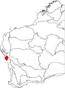 Distribution of B. victoriae, shown on a map of Western Australia's biogeographic regions.[18]