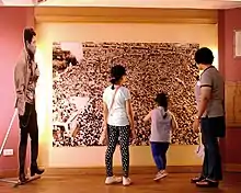 Established in the mid-2000s, the Bantayog ng mga Bayani Museum occupies the second floor of the Sen. Jovito R. Salonga building just behind the Wall of Remembrance.[15] The wall features rallies organized at Plaza Miranda by the Movement of Concerned Citizens for Civil Liberties (MCCCL) from 1971 to 1972, with the largest involving 50,000 people on September 21 protesting "Oplan Sagittarius", a plan by Marcos to declare martial law. Marcos would later sign martial law into declaration after his nervous reaction to the event a few hours earlier.[16]