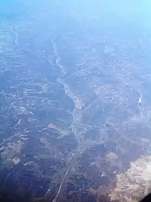 The Yan River flows through the district from northwest to southeast, from Hezhuangping to Qiaogou Subdistrict.[5]:62[8][9]:1469 It then flows from the district's center to its northeast, through Chuankou, Liqu, Yaodian, and finally through Ganguyi.[5]:62[8][9]:1469 The total length of the river's flow through Baota District is 62 kilometres (39 mi),[5]:62 and it forms basin area in the district's north that totals 2,203.68 square kilometres (850.85 sq mi) in area.[5]:62[9]:1469 The district's other major river is the Fenchuan River (Chinese: 汾川河; pinyin: Fénchuān Hé), which flows from Nanniwan to Yichuan County and into the Yellow River.[5]:263[9]:1469 The Fenchuan Canal (Chinese: 汾川渠; pinyin: Fénchuān Qú), a small canal off the Fenchuan River which irrigates nearby land, flows through Madongchuan, creating the Jinpenwan Reservoir (Chinese: 金盆湾水库; pinyin: Jīnpénwān Shuǐkù).[5]:268