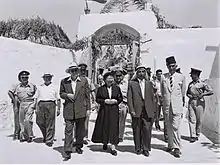 Israeli President Yitzhak Ben Zvi visiting MK Fares Hamdan[23] in Baka El-Garbiyya, September 1956