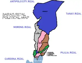 Map of Rizal with Baras highlighted