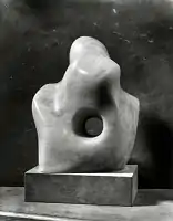 Her early work was highly interested in abstraction and art movements on the continent. In 1931, Hepworth was the first to sculpt the pierced figures that are characteristic of both her own work and, later, that of Henry Moore.[10] They would lead in the path to modernism in sculpture. In 1933, Hepworth travelled with Nicholson to France, where they visited the studios of Jean Arp, Pablo Picasso, and Constantin Brâncuși.[2] Hepworth later became involved with the Paris-based art movement, Abstraction-Création.[11] In 1933, Hepworth co-founded the Unit One art movement with Nicholson and Paul Nash, the critic Herbert Read, and the architect Wells Coates.[12] The movement sought to unite Surrealism and abstraction in British art.[12]