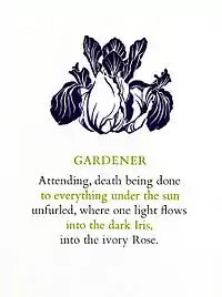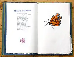 In 1960 Howard and Outram launched the Gauntlet Press, a small private press which produced hand-bound letterpress volumes of Outram's poetry and Howard's wood engravings. These limited editions, prized by collectors, can also be found in such public collections as Library and Archives Canada,[5] the Library of Congress, the British Library and the University of Toronto Thomas Fisher Rare Book Library. Throughout the 1970s and 1980s the Gauntlet Press also issued a series of letterpress broadsheets of Outram's poems, all of them designed (and many illustrated) by Howard. Digital facsimiles of the books and broadsheets of the Gauntlet Press in the collection of the Memorial University of Newfoundland can be viewed at the website dedicated to The Gauntlet Press of Richard Outram and Barbara Howard,[6] together with extensive background material and an exhaustive bibliography.