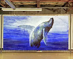 In her sixties she devoted a decade of work to an extensive series of cetacean studies, Encounters with Whales. In his essay Encounters and Recollections in the Art of Barbara Howard and Richard Outram, the poet Jeffery Donaldson writes: "For the most part, these are portraits of the mammals in something like their private element. Their appearances are brief, ecstatic revelations, fortuitous glimpses, sudden soundings. They seem to break forth abruptly from their solitude and then slip away as quickly again."[7] These enormous canvases, some as large as 16 feet (4.9 m) across, have never been publicly exhibited.