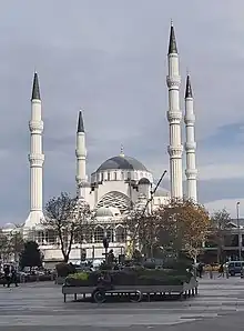 Barbaros Hayrettin Pasha Mosque is a mosque complex in the Levent neighborhood of Istanbul, Türkiye. Architect Sinan's Suleymaniye Mosque in Edrine formed the insipiration for the design of the mosque. Maritime and shipping motifs were used in the project in honor of Hayreddin Barbarossa and his irregular sailors — Levends — which gave the area its name. The mosque complex is composed of an underground parking lot (for about 1000 cars), a workshop, a library, a multipurpose hall, and a dining hall, and can hold up to 20,000 worshippers.[3][4]