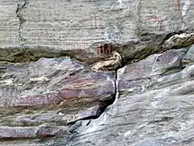 Ancient Cave Paintings at Lakhudiyar, Almora District, Uttarakhand India - Engraved trishula (trident) Image