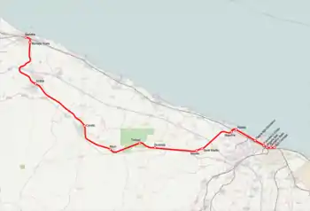 Since 22 December 2008 the section of the line within the city of Bari has been shared with the metropolitan railway service.[3] Since then, the line operation, known before as Ferrovia Bari Nord ("Bari northern railway"), has been called Ferrovie del Nord Barese ("Bari region northern railways").