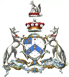 Baron Holland, of Holland in the County of Lincoln,[1] and Baron Holland of Foxley, of Foxley in the County of Wiltshire,[2] were two titles in the Peerage of Great Britain. The first barony was created on 7 March 1762 for Lady Caroline Fox, the daughter of Charles Lennox, 2nd Duke of Richmond and the eldest of the famous Lennox sisters. The second barony was created on 17 April 1763 for her husband, the prominent Whig politician Henry Fox. Lord and Lady Holland were both succeeded by their eldest son, the second Baron. He had previously represented Salisbury in Parliament. On his early death in 1774 the titles passed to his only son, the third Baron. He was also an influential Whig politician and notably served as Lord Privy Seal from 1806 to 1806 in the Ministry of All the Talents. He was succeeded by his eldest legitimate son, the fourth Baron. He sat as Member of Parliament for Horsham. He had four daughters but no sons and on his death in 1859 the titles became extinct.