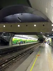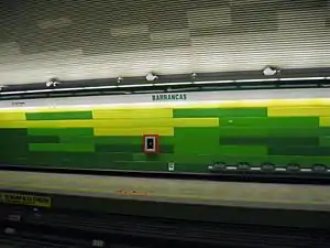 Barrancas is an underground metro station on Line 5 of the Santiago Metro network in Santiago, Chile. It is located underneath the junction of Teniente Cruz Avenue and General Bonilla Avenue on the border of the communes of Pudahuel and Lo Prado, between Laguna Sur station (1140 meters away) and Pudahuel station (990 meters away). It also lies parallel to the Route 68 highway which connects Santiago with Valparaíso and Viña del Mar, and the highway crosses over the underground metro line.[2] The station has disabled access.[3]
