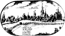 Historical view of Barth in 1618, from the Lubin map made by Eilhard Lubinus