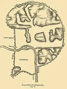 - ↑ (in German) Christian Hülsen: Das Forum Romanum. Seine Geschichte und seine Denkmäler. Loescher, Roma 1904, p. 36 (Digitalised edition).