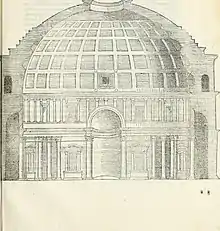 The work accurately located the Roman Forum, but that aspect was obscured by a fierce debate with Pirro Ligorio, who in Christian Hülsen's words was a "famous architect ... but as an antiquarian [only] an ambitious dilettante".[2] Ligorio sited it between the Campidoglio and the Palatine Hill and strongly criticised Marliani's work. This forced Marliani to add an addendum to a 1553 reprint of 'Topographia', in which a reborn Romulus claims a different site for the Roman Forum, but the author replies to him "Romulus, having just crossed the Lethe and thus forgotten all the places in the city, you swear the same nonsense as Strepsiades.“[3] Ligorio emphatically supported his theory using invented inscriptions and monuments and so his opinion prevailed until early 19th century excavations proved Marliani to have been correct.