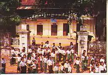 Before the British colonial period, the education system in Burma was primarily driven by Buddhist monasteries at least since the 11th century. The Buddhist monastic school system gave Burma a literacy rate considerably higher than those of other Asian countries in the early 1900s. In the colonial period, the British administration and Christian missionaries founded Western education centers including St. Patrick's School (now B.E.H.S. No. 5) of the De La Salle Brothers in Moulmein. In 1869 in Lower Burma, there were 340 "Lay Schools" with 5069 students, providing basic Western education. In comparison, 3438 monastic schools were operating in the region, providing Buddhist education to over 44,000 students.[2] Traditional methods of teaching, however, became obsolete in the British colonial environment. The influence of Buddhist monasteries in towns and villages diminished considerably as well. The retreat of Buddhist monasteries left a vacuum in education, filled increasingly by Christian missionary schools. Threatened by the growth of Christian education, Buddhist Burmese founded several Anglo-Vernacular high schools in the 1890s. Founded in 1899, No. 9 B.E.H.S., then known as Shin Maha Buddhaghosa National School was among the first nationalist schools founded in the region.[3]