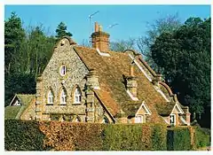 Ancient flint axes have been found in Basildon but the earliest physical remains to be seen today are two Bronze Age ditch sections called Grim's Ditch (circa 2,400 BC). The Romans built a road through the parish between Silchester to Dorchester-on-Thames and a wealthy Romano-Briton erected a farm and villa alongside this. It was destroyed when Brunel's Great Western Railway was built through it in 1838.[4] The ancient parish of Basildon with five manors covered the present civil parishes of both Basildon and Ashampstead.[5] The main Basildon manor was mentioned in the Domesday Book (1086) as Bastedene. Before the Norman Conquest the manor of Basildon was held by a free woman named Aileva.[5]