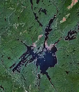 The Baskatong Reservoir (French: Réservoir Baskatong) is a man-made lake in western Quebec, Canada. It was formed following the construction of the Mercier Dam (fr) in 1927[2] and has an area of 413 km2.[3] Since 2007, a 55 MW generating station is in operation at the site of the dam, the reservoir also being used to control the flow of the Gatineau River for several hydroelectric generating stations downstream.