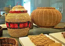 Despite the interest in documenting handcraft traditions, no complete pieces from before the 1960s remain.[1] Although not as popular as other handcraft traditions, basketry can be found all over Mexico, especially in indigenous communities in Oaxaca, Chiapas and Veracruz,[4] with many created for collectors.[1] However, a number of basketry items are still make for local use, such as a cradle used by indigenous women in the Sierra Norte of Puebla, and pieces created for ceremonies in various parts of Mexico,[1][5] such as special baskets created by the Seri in Sonora and the Nahuas in the Huasteca region for Day of the Dead.[5]