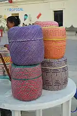 In Guerrero state decorative baskets are made with geometric and animal motifs with palm fronds dyed in various colors.[1]