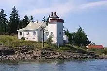 Bastøy Lighthouse (Norwegian: Bastøy fyr) is a coastal lighthouse in the municipality of Horten in Vestfold og Telemark, Norway. It is located on the island of Bastøy in Oslofjorden southeast of Horten. It was established in 1840 and originally consisted of a stone house with a low tower. It was replaced by an automated light in 1986.[2][3]