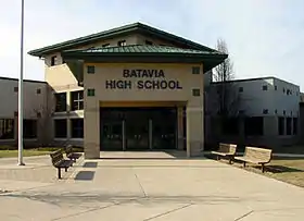 Batavia High School, or BHS, is a public four-year high school located in Batavia, Illinois. It was created by the merger of West Batavia High School and East Batavia High School (and their separate school districts) in April 1911 and is part of Batavia Public School District 101; the East Batavia and West Batavia athletic programs merged in 1909. Since 2009, the school has added a new "D Wing" of classrooms, "E Wing" of music rooms, a fieldhouse, new athletic facilities, and an auditorium ("F Wing"), which was completed in 2011.