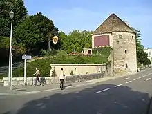 • Pelote (Pelotte) Tower: This stone tower dates to 1475 and was part of the city of Besançon's fortifications. It sits on the Strasbourg Quay at the point where the Mouillère meets the Doubs. The tower owes its name to Pierre Pillot, Seigneur de Chenecey, who bought the land on which the tower sits. When Vauban received the commission to improve the city's defenses, he decided to incorporate the tower, after extensive modification, into his design, rather than destroy it. In 1942 the tower was declared a historical monument. It now houses a restaurant.