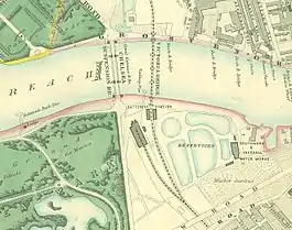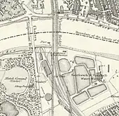 Battersea Park (originally Battersea) was a railway station on the London, Brighton and South Coast Railway (LB&SCR) located close to the River Thames immediately to the south of Victoria Railway Bridge (now Grosvenor Bridge) on the east side of Battersea Park in Battersea, south-west London. It opened on 1 October 1860 and changed its name to "Battersea Park" on 1 July 1862. The station was closed on 1 November 1870 when the LB&SCR started to use Grosvenor Road railway station on the north side of the river.[1][2]