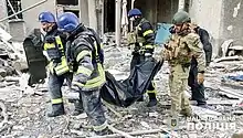 On 8 April, one person was killed and another injured by Russian shelling.[154] On 13 April, one civilian was killed and 12 were wounded in Avdiivka.[155] On 2 May, three civilians were killed due to Russian bombardment.[156] On 3 May 2022, according to a news article on Dutch outlet Nederlandse Omroep Stichting, at least 10 people died and 15 more were injured during an attack on a coking plant. Allegedly, the attack took place after the workers had finished work and were waiting for the bus.[157] On 23 May, Russian shelling and artillery bombarded Avdiivka all night long. Three civilians were injured and 20 houses as well as a kindergarten were damaged severely.[158] On 30 May, one civilian was killed during a street fight in Avdiivka.[159] 2 civilians were killed on June 12.[160] On 5 July, 2 civilians were killed in Avdiivka.[161] One civilian was killed and two wounded on 7 July.[45] One civilian was killed on 6 August.[162] On 12 October 7 civilians were killed and 12 more were injured after a Russian shelling of the city market.[163][164]
