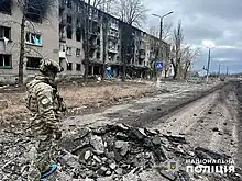 ![]() A destroyed building in Avdiivka after Russian shelling, March 2023 | |||||||