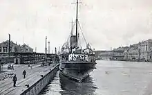 Vimiera and Whitshed replaced Vimy and Keith, embarking many of the Marines and Guards.[26] The harbour was full of ships but two gruppen (group, about 30 aircraft, similar to a RAF wing) of Stukas failed to hit the ships but bombs hitting the quayside near Vimy and Keith caused some casualties.[28] The destroyers HMS Venomous and Wild Swan arrived and began embarking Force Buttercup and the remainder of the Irish Guards. With Germans in positions overlooking the harbour the Guards and the ships engaged in a duel with the German artillery. German tanks advancing towards the quayside were knocked out by the 4.7 inch guns of Venomous, one tank turning "over and over, like a child doing a cart-wheel".[32] German field guns bombarded the harbour as the destroyer Venetia moved through the narrow entrance channel, and hit Venetia several times. Fires broke out on the ship but it was reversed out and made way for Venomous and Wild Swan which also departed in reverse, Venomous steering with its engines as the rudder had jammed.[26]