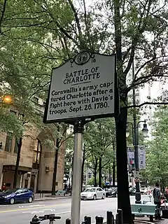 ![]() Plaque commemorating the Battle of Charlotte, located in Charlotte, North Carolina | |||||||