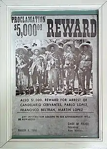Wanted poster from the Chief of Police of Columbus, for the capture of the Mexican revolutionary officers that led the Mexican troops in the Battle of Columbus.