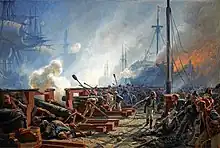 The Battle of Copenhagen. Painting by Christian Mølsted. (view from a floating battery)