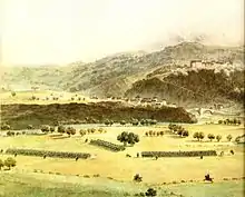 The second day's action cost the Austrians a further 670 killed and wounded, plus 1,087 captured. The Preiss Infantry Regiment # 24 took particularly heavy losses. The French lost 621 killed and wounded, and 317 captured.[4] The second day surprise made Bonaparte anxious that Beaulieu might intervene from the east, so the French general reorganized his forces and sent out strong patrols on 16 April. But Argenteau's mauling at Montenotte and Dego shook Beaulieu's nerve and he stayed near Acqui. Satisfied that Beaulieu was out of the picture, Bonaparte turned on Colli with his main strength on 17 April.[6] On 21 April, The French beat Colli at the Battle of Mondovì and soon afterward the Sardinian government sued for peace.