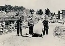 Border volunteers stand over the dead body of Fenian John Rowe of Burlington, Vermont on 25, May 1870