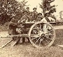 Canadian Home-Guards displaying with a disbanded Fenian Cannon