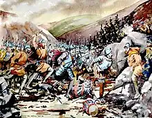 The Battle of Glenmalure (Irish: Cath Ghleann Molúra) took place in Ireland on 25 August 1580 during the Desmond Rebellions. A Catholic army of united Irish clans from the Wicklow Mountains led by Fiach MacHugh O'Byrne and James Eustace, 3rd Viscount Baltinglass of the Pale, defeated an English army under Arthur Grey, 14th Baron Grey de Wilton, at Clan O'Byrne's mountain stronghold of Glenmalure.[4]