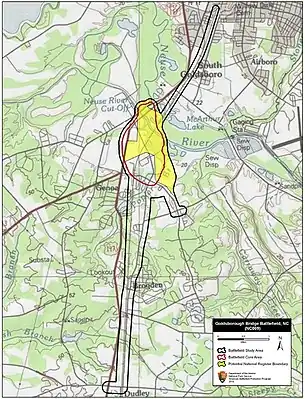 Map of Goldsborough Bridge Battlefield core and study areas by the American Battlefield Protection Program.