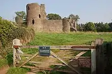 Grosmont Castle, along with the nearby White Castle and Skenfrith Castle, have given rise to the Three Castles Walk which links the castles and along with the Monnow Valley Walk brings visitors to the village. Grosmont is dominated by the nearby Graig Syfyrddin (or Edmunds Tump, possibly after Edmund Crouchback, 1st Earl of Lancaster). The castle itself was established by the Normans in the wake of the invasion of England in 1066.[3] It was the birthplace of Henry, 1st Duke of Lancaster.[4]