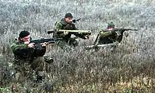 ![]() The Russian troops exchanging fire with Chechen forces, just outside of Grozny, December 1999 | |||||||