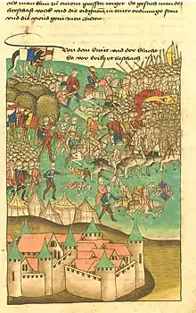 The battle as depicted in the Zürcher Schilling