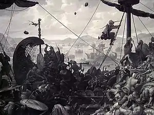 ![]() Harald Hårfagre i slaget ved Hafrsfjord by Ole Peter Hansen Balling, 1870 | |||||||||